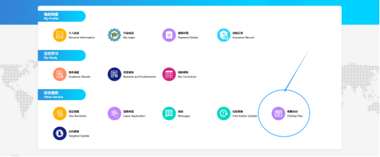 Log in On Line, find the "假期去向(holiday plan)" and click to fill in the application. The holiday registration deadline is January 24, 2025. If there is any change of itinerary during the holiday, please ensure to update your destination in time.